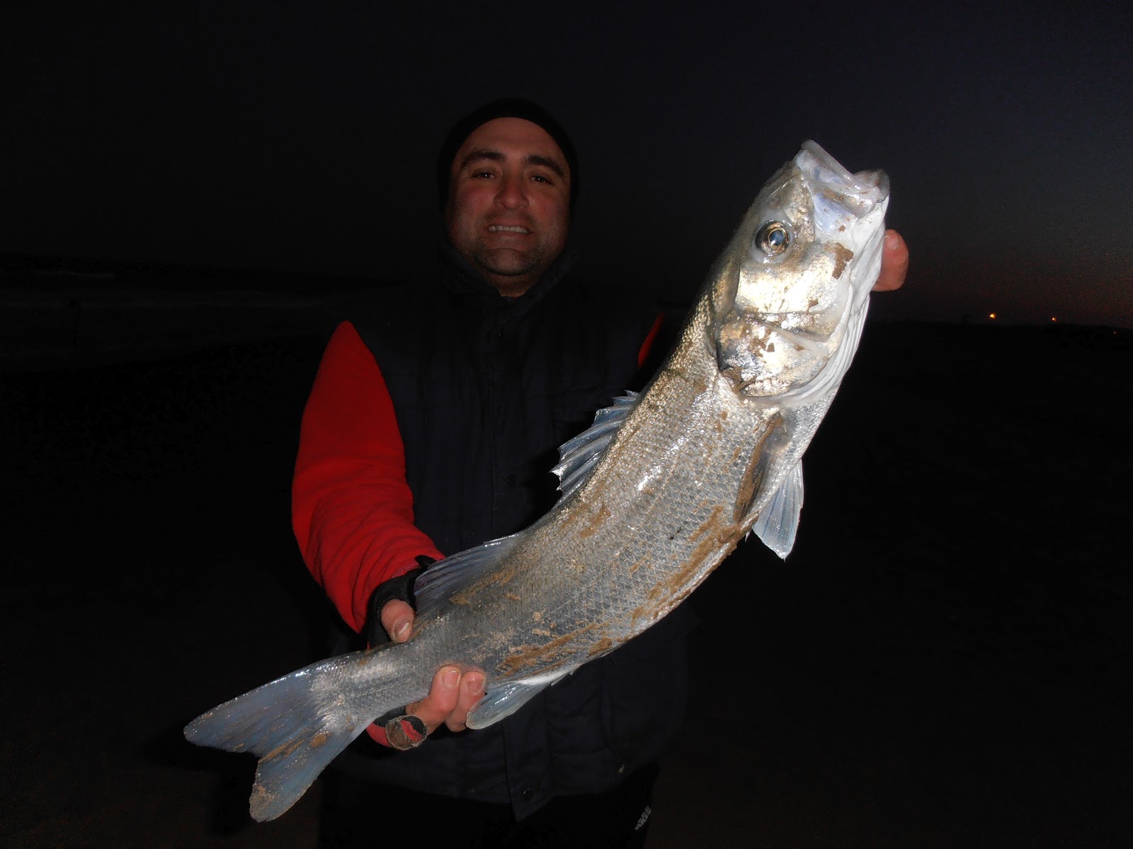Nueva salida de pesca en la que mi compañero de pesca Reyes y yo nos disponiamos nuevamente a buscar lubinas ya que el mar estaria para ellas, sobre las 17:00 del sabado ya estabamos instalados en la playa, de cebo sepia sucia congelada y un par de cajas de americana por si el mar se calmaba y habia que buscar alguana otra especie como la dorada jeje, los montajes los de siempre para estas condiciones gametas de unos 3 metros de largo atado con un 0,33 de daiwa que esta dando muy buen resultado ultimamente con las lubinas y sargos en estas condiciones que a continuacion pondre cual es, plomo de garra como no y urfe . Sobre las 18:30 de la tarde le entra a mi compañero una buena lubina con la que mantiene una buena lucha video incluido y lubina de 2,5 kg, la cual nos sorprende  por que aun es de dia y normalmente las estabamos sacando de noche. La noche se presentaba muy fria pero no imaginabamos que tanto, la verdad que lo pasabamos muy muy mal ,era imposible pescar ya que no nos sentiamos las manos y los pies ni os cuanto , nunca habia pasado una noche asi de mal pescando .Sobre las 2 de la mañana de nuevo mi compañero repite y saca otra lubina de 1,44kg que nos anima pero el frio seguia pegando de manera que por mas que queriamos estar con las cañas activas no nos dejaba ya que todo literalmente se congelaba era impresionante , por aqui no estamos acostumbrados a tanto frio , ya de dia nos visito nuestro amigo pedro otra vez ya que habia estado en la tarde con nosotros un rato tambien,  aun el frio era intenso y no se le ocurrio otra cosa que llevarnos un termo con leche y cafe irviendo que se lo estaremos agradeciendo toda la vida ,lo que hizo no tiene precio jeje, durante la mañana solo salio un sargo bueno de 660g y como no obra de mi compi otra vez , sobre las 12 salimos camino  a orihuela y hasta la proxima salida de pesca que posiblemente sea diurna ya que parece que las lubinas no solamente estan activas de noche, ya que si no cambia la temperatura es imposible pescar de noche asi con estas temperaturas, de una manera u otra lo seguiremos intentando que seguro que la gran recompensa esta cerca.Un saludo a todos y a continuacion los videos y las fotos de las capturas.